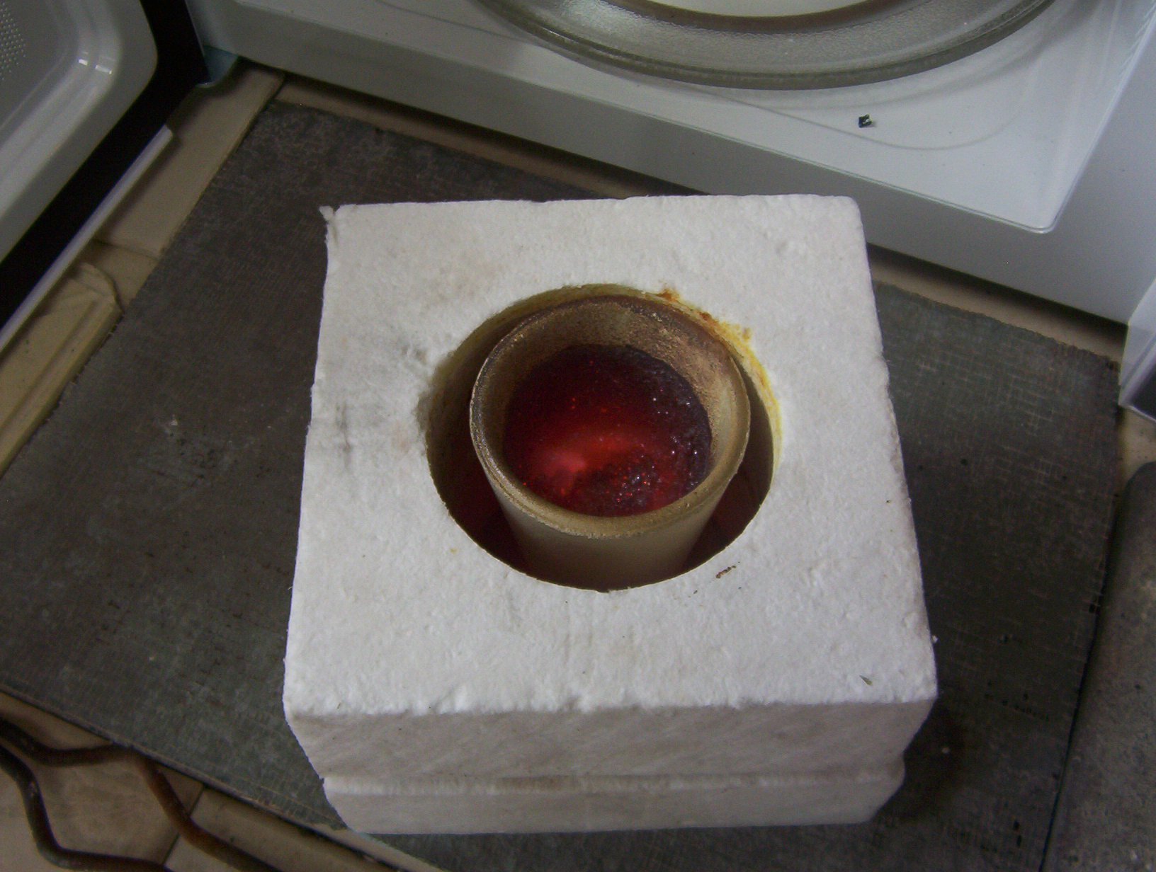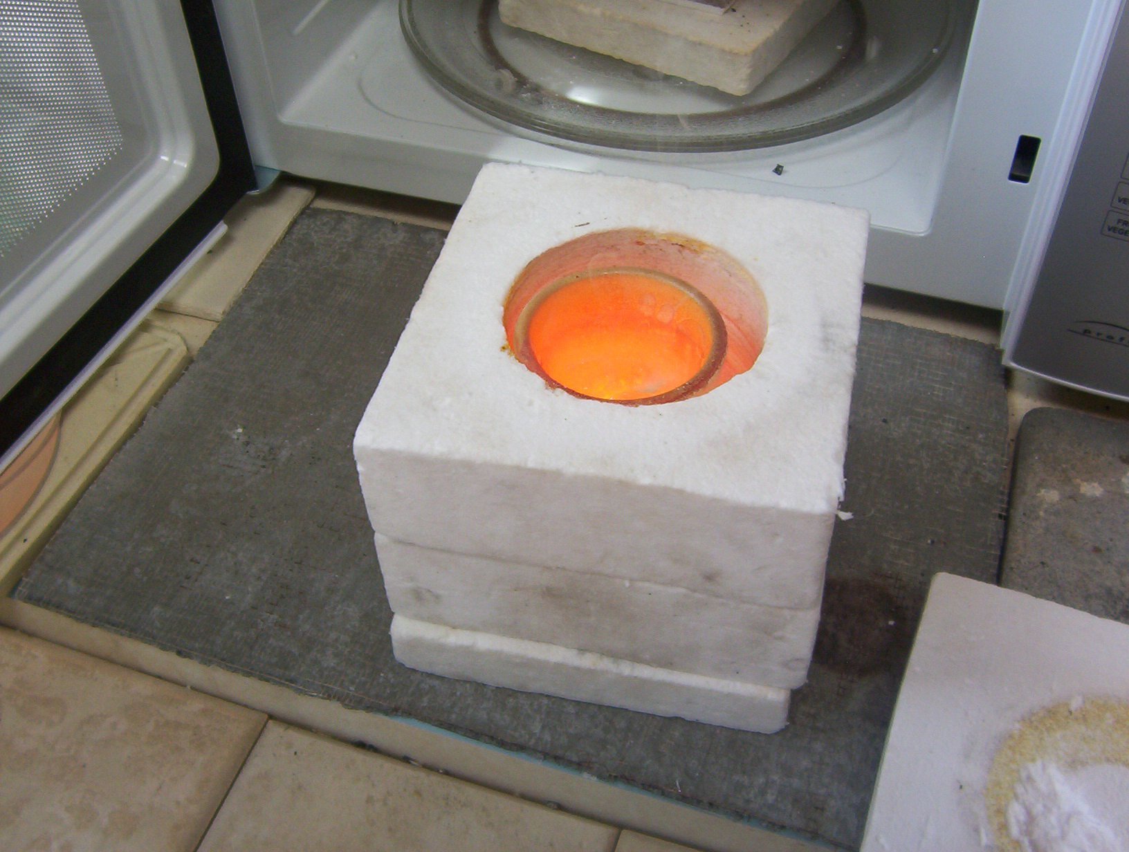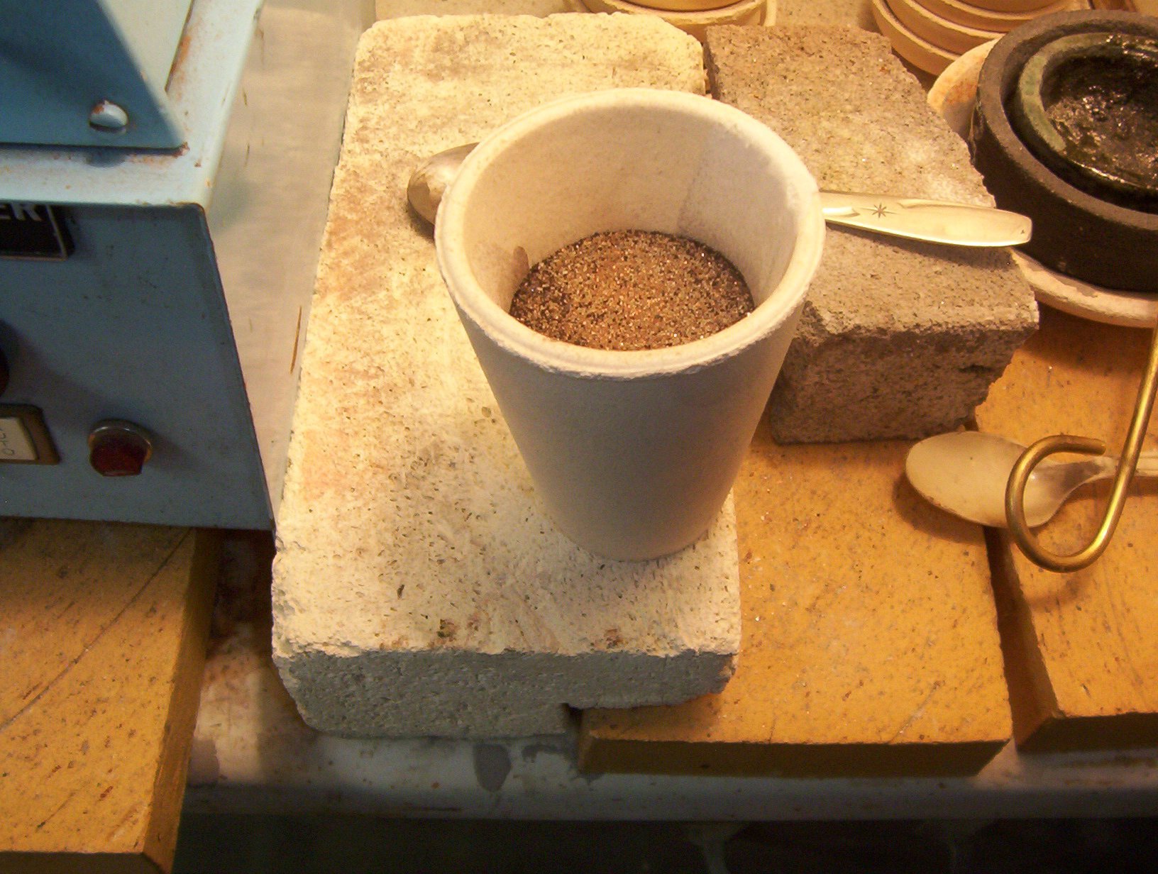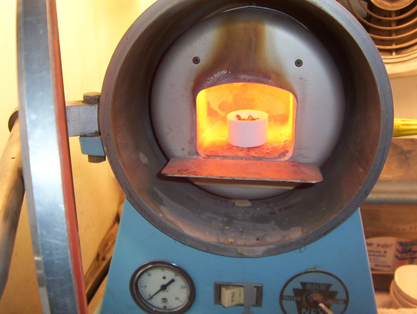 Figure 7 shows the 15 gram size clay crucible loaded with the 90 grams